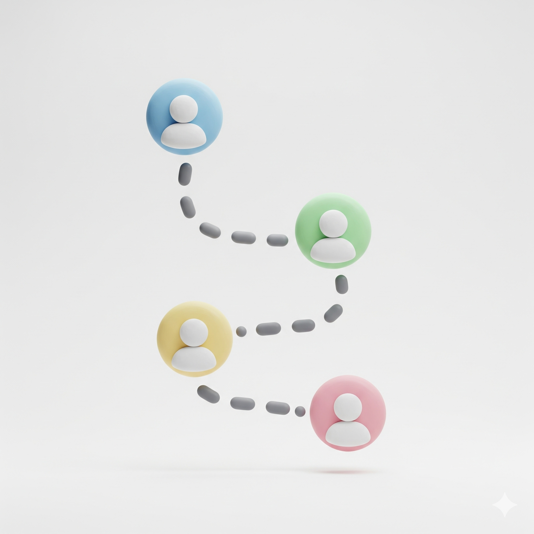 A 3d icon representing a user journey path. It features a winding dotted line connecting several circular nodes, symbolizing a user's navigation and online behavior. The icon is rendered in a soft claymation style with a clean design, isolated on a plain white background with soft studio lighting.