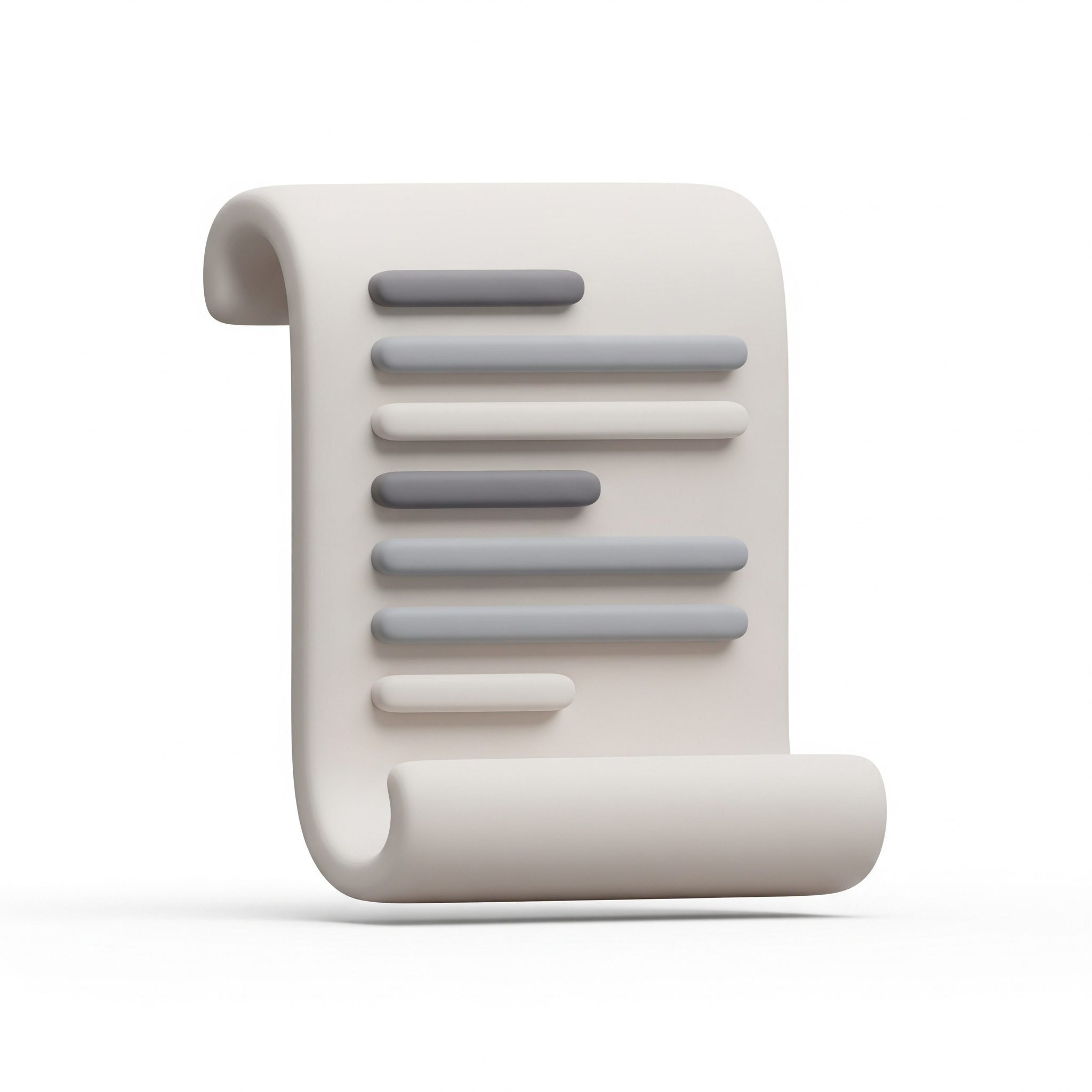 A 3d icon of a scrolling document or a long list with simplified horizontal lines, representing a log data file. The icon is rendered in a soft claymation style with rounded edges and a simple color palette, isolated on a plain white background with soft studio lighting.