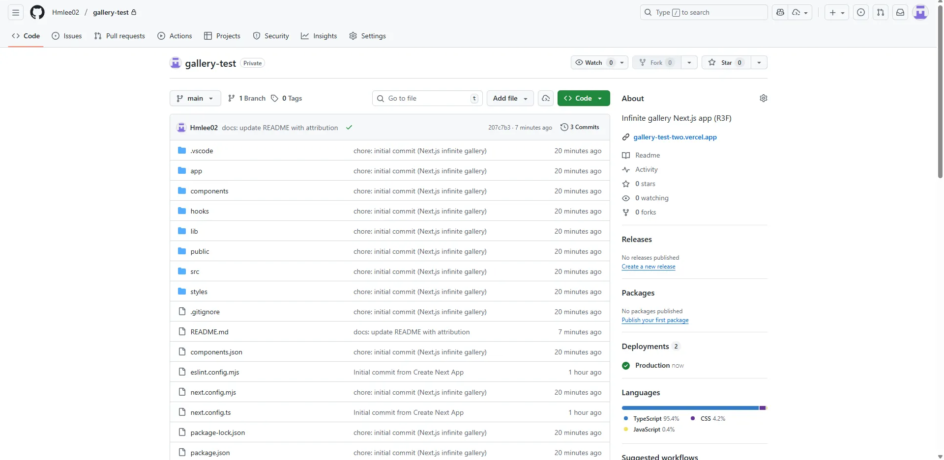 깃허브 계정을 연결해 레포지토리 업데이트 후, 외부 배포까지 완료되었다.