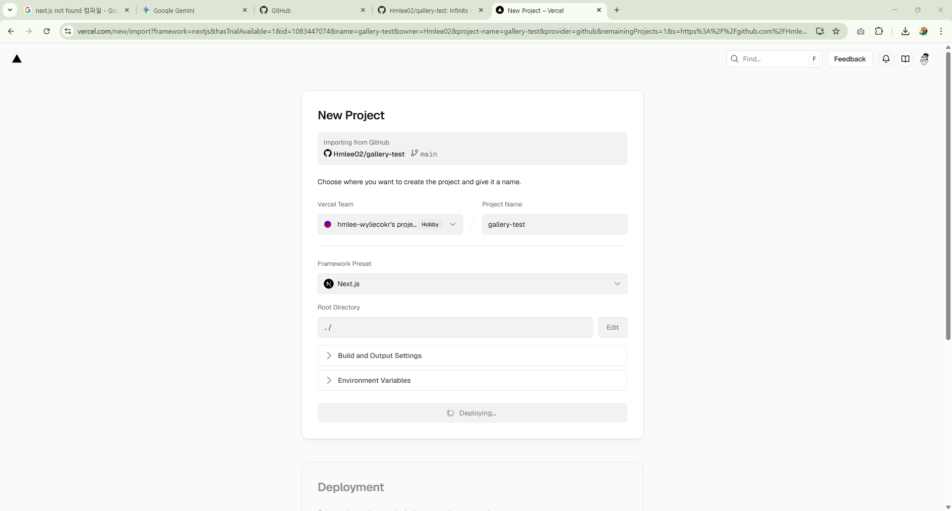 next.js 프레임워크를 제공하는 vercel에서 배포가 가능하다길래 배포까지 진행해보았다.