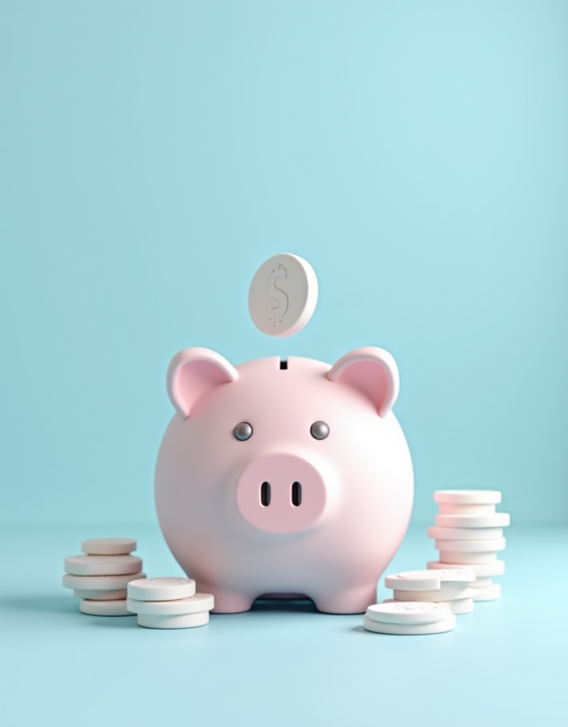 (masterpiece, best quality, high resolution), 3d clay render of a financial app splash screen, featuring a cute 3d piggy bank and floating coins, clean and minimalist design inspired by Toss and Shinhan Bank apps, dominant colors are pastel blue and white, soft and smooth clay texture, centered composition, gentle lighting, octane render, trending on artstation