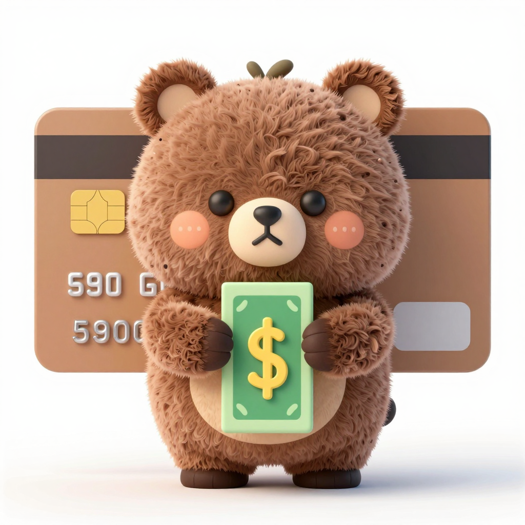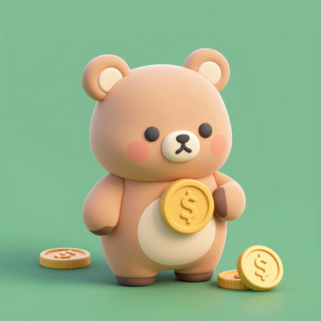 프롬프트 : Positive Prompt : A Cute Bear Character with Money, 3D Model, Fluffy Texture
