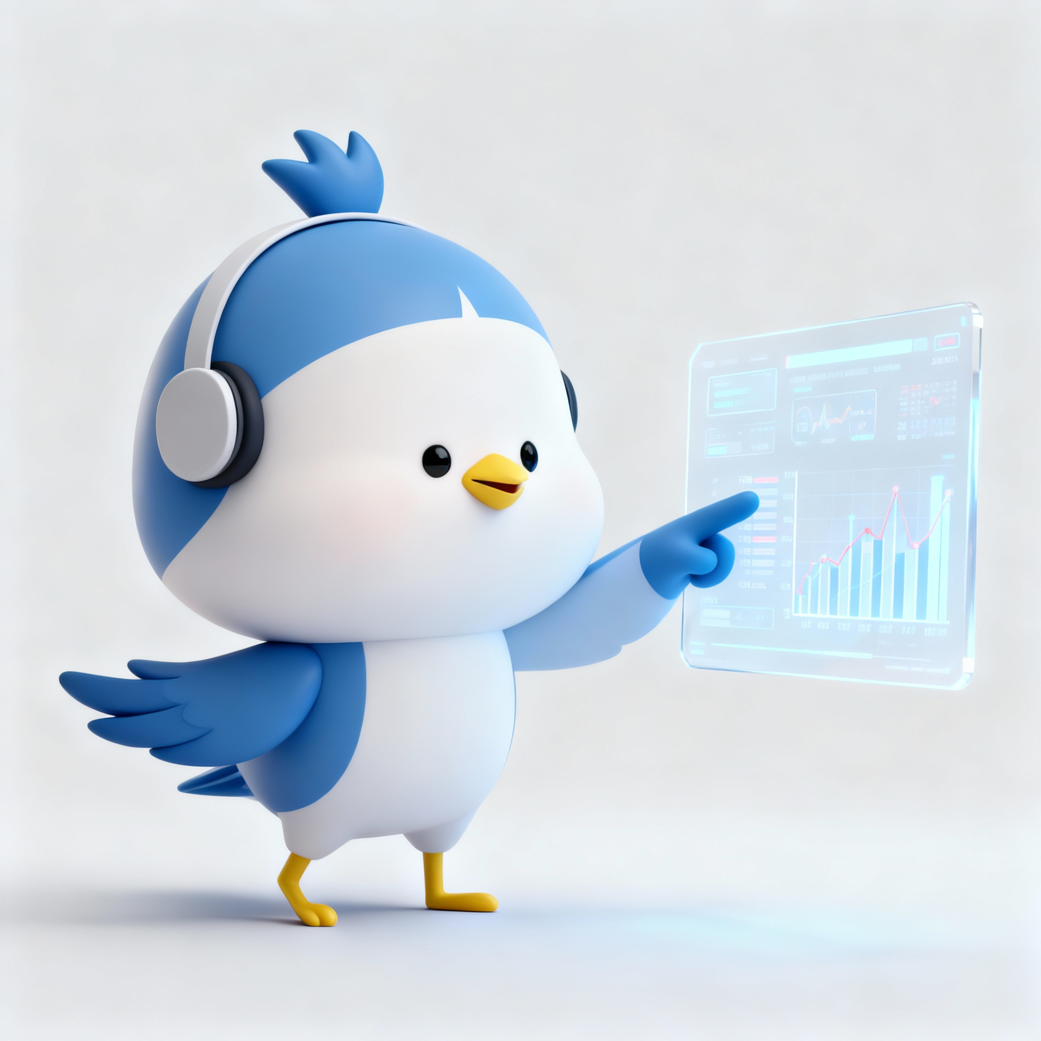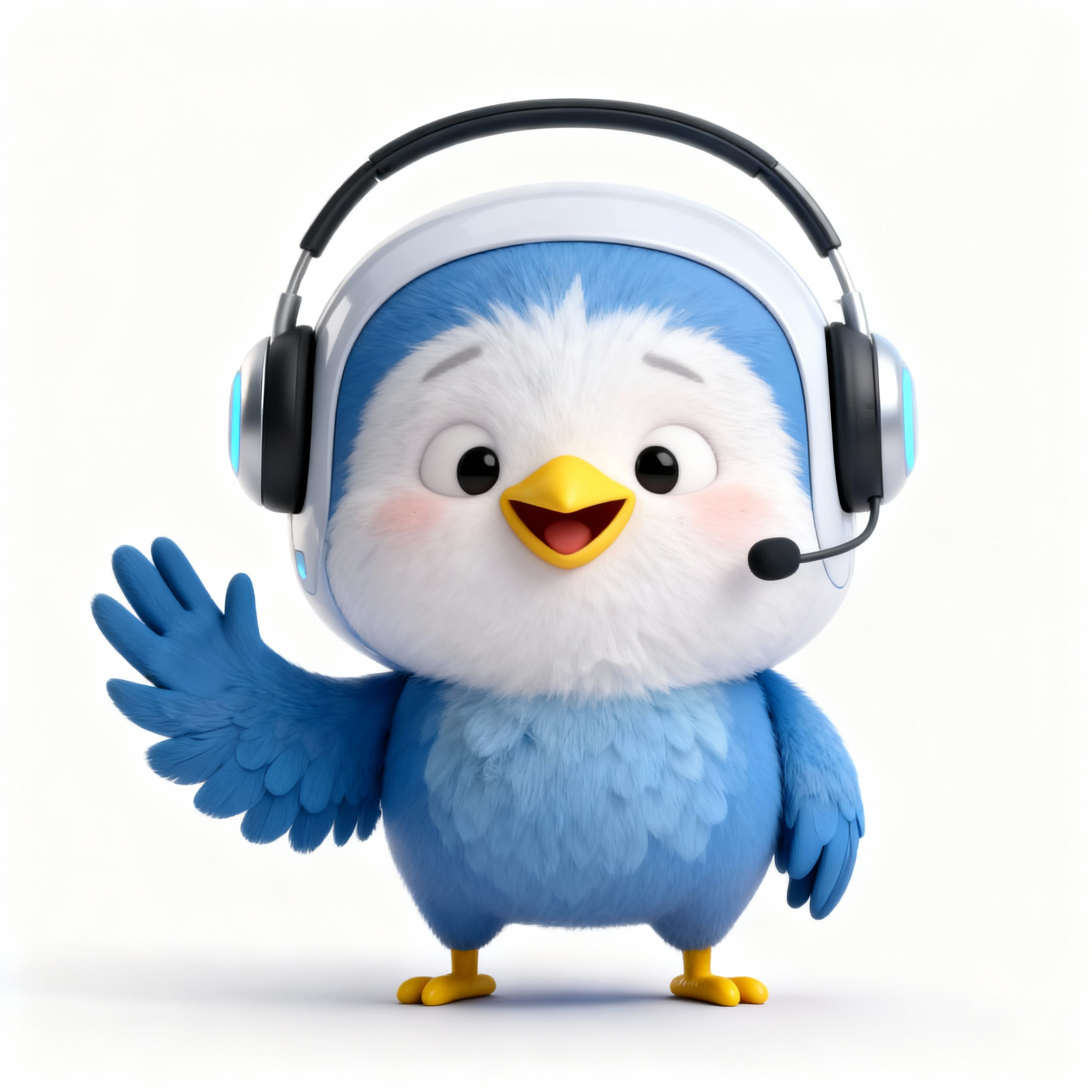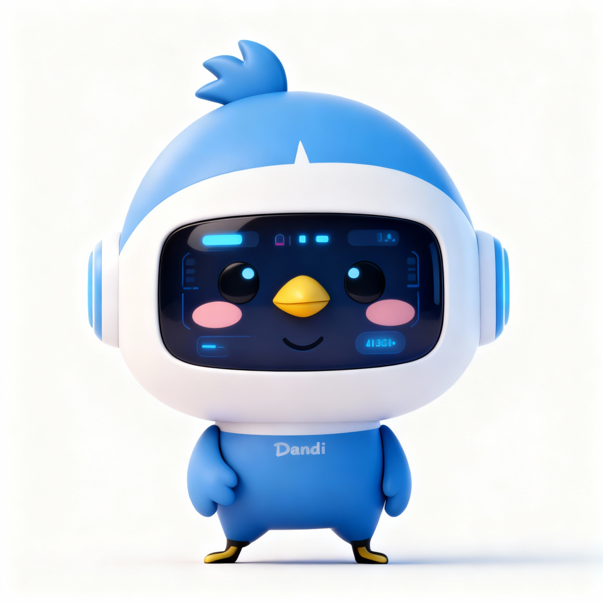 3D render of "Dandi", a cute and friendly small bird character, mascot for a finance AI chatbot,