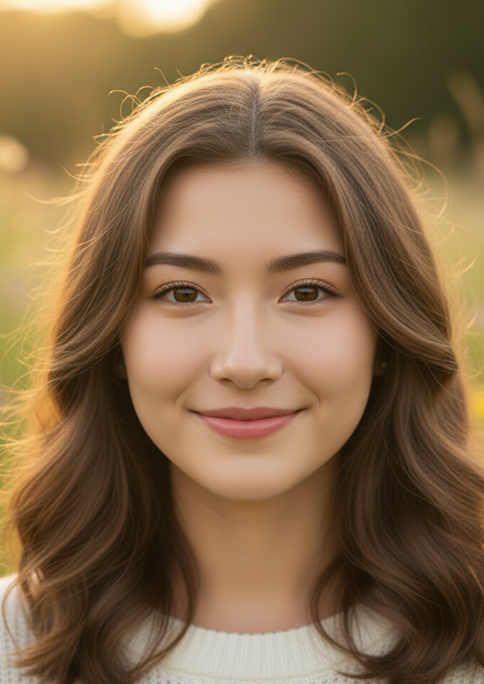 soft and smooth shading, gentle smile, looking directly at the camera,
