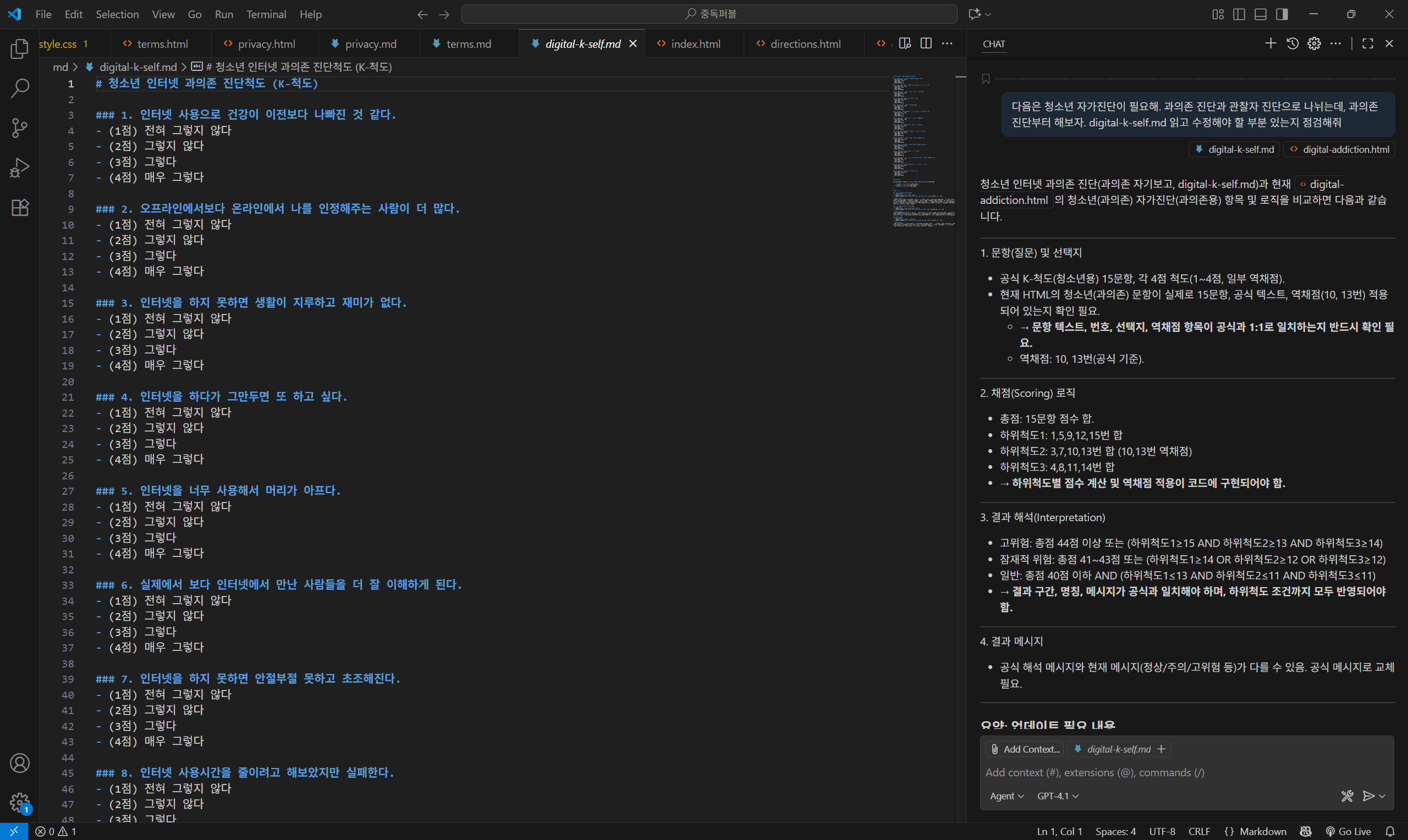 - 개인정보처리방침, 이용약관, 외부 센터 정보 등 타이핑 작업이 요구되며 에이전트가 임의로 바꿀 수 없는 정보 또한 마크다운으로 정리, 해당 파일 내용대로 작업하도록 요구