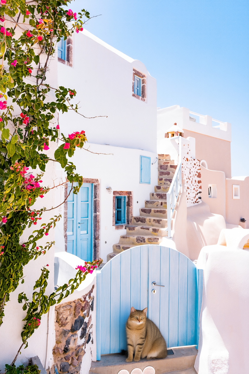 프롬프트 positive:add cat in front of blue door negative:black cat