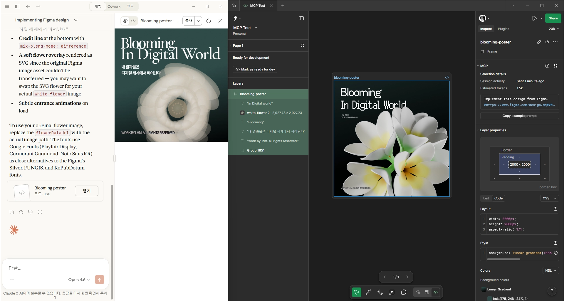 Blender MCP를 설정한 김에 공식으로 제공하는 Figma MCP도 같이 설정했다. 외전으로 한번 써봤는데, 기본 tool은 여전히 URL로 노드값을 읽어 디자인을 분석하는 tool이 전부인 듯 하다. 블렌더처럼 Figma에서도 디자인을 직접 만드는 작업을 기대했는데, 그렇게까지는 해내지 못했다.